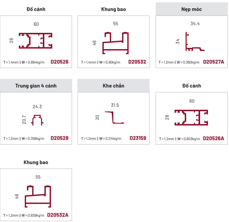 HỆ CỬA SỔ LÙA XINGFA 1.2 - 1.4MM ( HỆ 55 )