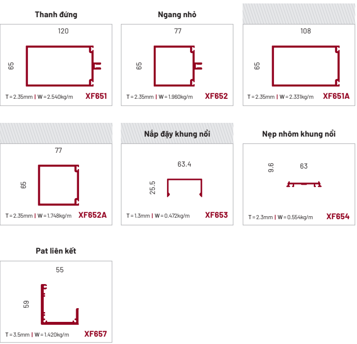 HỆ MẶT DỰNG XINGFA 1.0MM (HỆ 55)